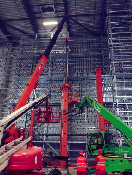 - Далее специалисты выполнили монтаж: установили механизмы штабелирования, направляющие линии для транспортировки грузов, а также подъемные устройства.