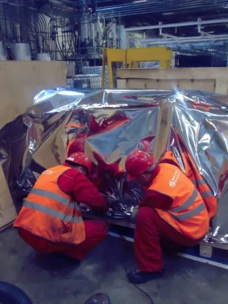 - Упаковка оборудования на поддонах – использование пленки с вакуумной откачкой воздуха, дополнительная защита фанерными щитами и крепежными элементами.